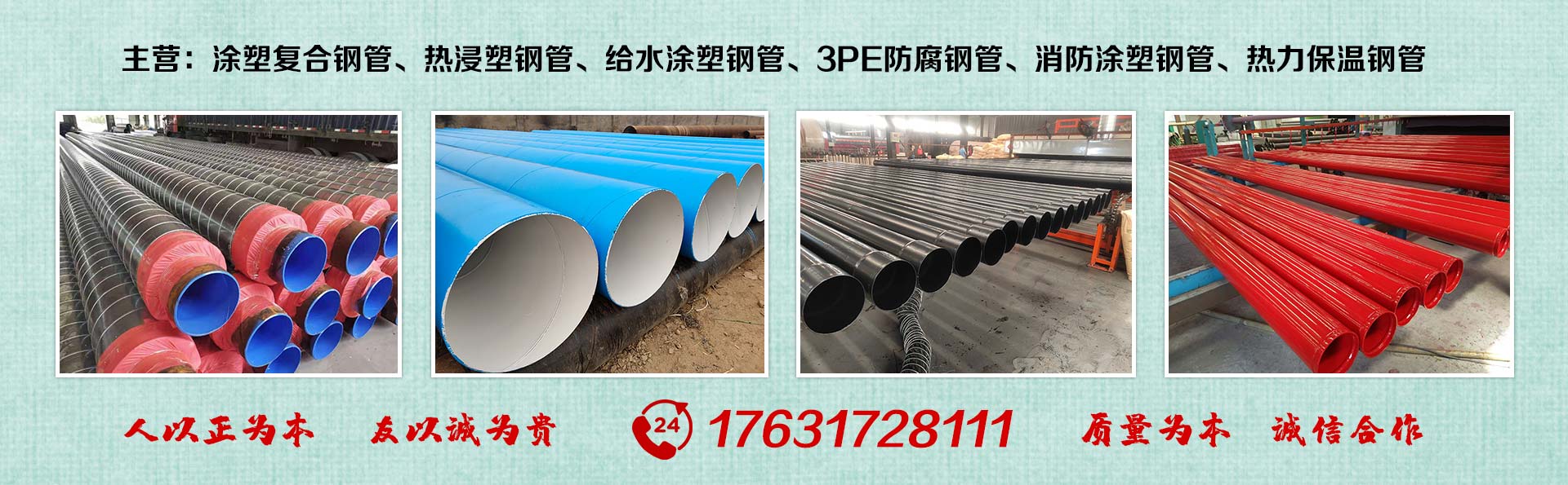 滄州友誠管業有限公司是一家專業從事生產防腐涂塑管道及管件于一體的大型企業。公司注冊資金8600萬元,位于中國管道生產基地—河北鹽山縣,近靠京滬高速、榮烏高速、黃石高速30公里,高鐵滄州西站40公里,天津國際機場、濟南遙墻機場150公里,為客戶來訪及業務發展提供了便利的交通條件。        鋼管系列:螺旋鋼管、無縫鋼管、ERW直縫焊管、JCOE埋弧焊直縫鋼管、熱鍍鋅鋼管。        涂塑系列:內外涂塑鋼管、涂塑復合鋼…… 了解更多